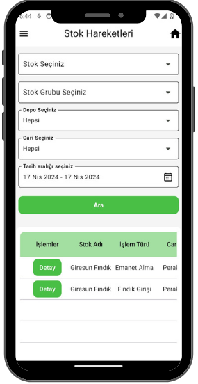Fındık ürünlerinin fabrikadan müşteriye ulaşana kadar olan sevkiyat sürecini detaylı bir şekilde takip etmenizi sağlar.