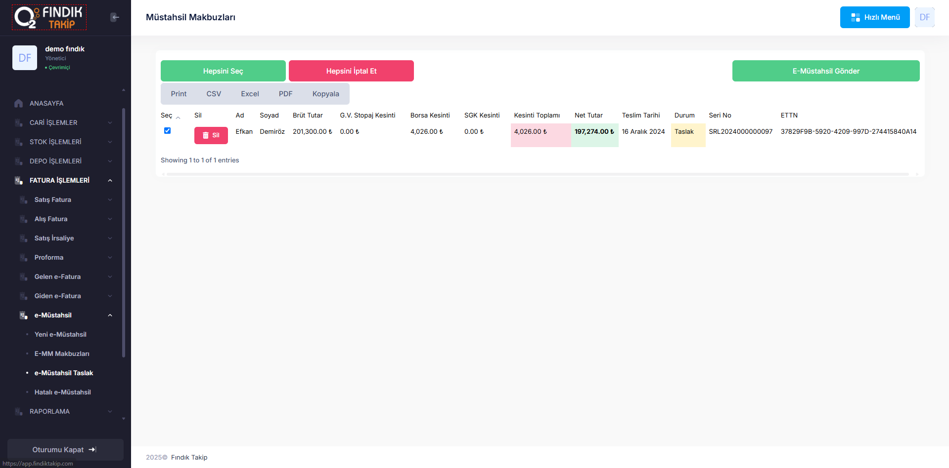 Fatura İşlemleri paneli ile fındık sektörüne özgü fatura süreçlerini anlık olarak yönetebilirsiniz. Alış ve satış faturalarını hızlıca görüntüleyebilir, irsaliyelerle ilişkilendirebilir ve finansal hareketlerinizi detaylı bir şekilde takip edebilirsiniz. Yazılım, fatura oluşturma, düzenleme ve raporlama süreçlerini otomatikleştirerek manuel hataları en aza indirir ve zaman tasarrufu sağlar. Ayrıca, detaylı analiz araçları sayesinde işletmenizin mali performansını değerlendirebilir, nakit akışını optimize edebilir ve stratejik kararlar alabilirsiniz. Fındık sektöründe finansal şeffaflık ve doğruluk için kritik olan bu sistem, işletmenizin mali sağlığını güçlendirir ve sürdürülebilir büyümeyi destekler.